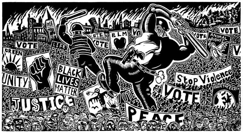 It’s not been announced publicly yet, but our keynote speaker will be Sue Coe. Sue is a national treasure. She will spend the week with us at CATS, and we’ll produce an edition of one of her linoleum block prints. We’re still planning the festival, so check cats.rice.edu for times and to register.