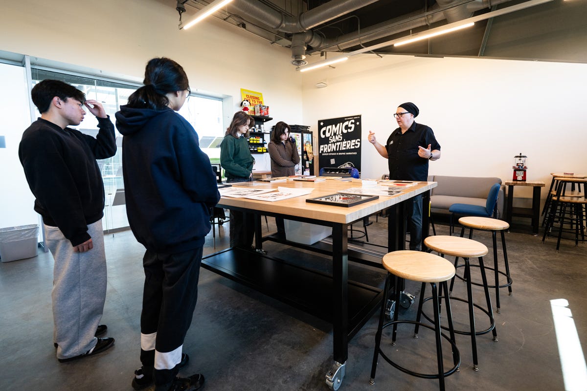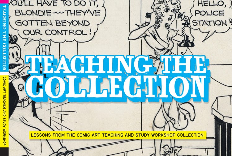 We will launch the book at a one-day comics symposium focusing on comics in the classroom, called Teaching Comics. It’s scheduled for Friday, February 20, so save the date! If you attended our conference last March, this will be a bit smaller, but much more hands-on with fun workshops and tours of the new spaces and exhibitions. Although aimed at an audience of high school art teachers, the tours and workshops should be engaging for any adult interested in art, printing and comics.